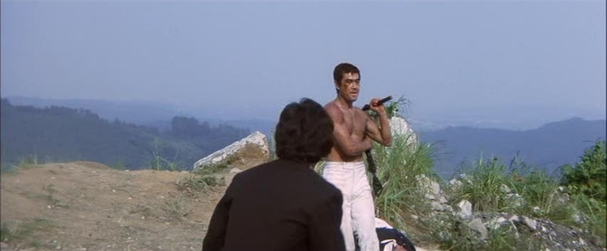 The fights are done in the classic Sonny Chiba style, meaning it’s brutal. It doesn’t have the back and forth of Hong Kong fight choreography, as most of the battles are decided in only a few hits, many times only one hit is needed to end someone. Some of them do end with crazy kills like strikes so hard it pops out someone’s eye, gouging another dude’s eyes, or a rib gets ripped right out of the person’s body. I actually feel sorry for most of the bad guys, as they all die really horrible, painful-looking karate deaths. Yasuaki Kurata has a really small scene in the film, but it gives him a chance to fight using Bruce Lee style fight choreography, which he does well, doing a fantastic homage to Bruce.
