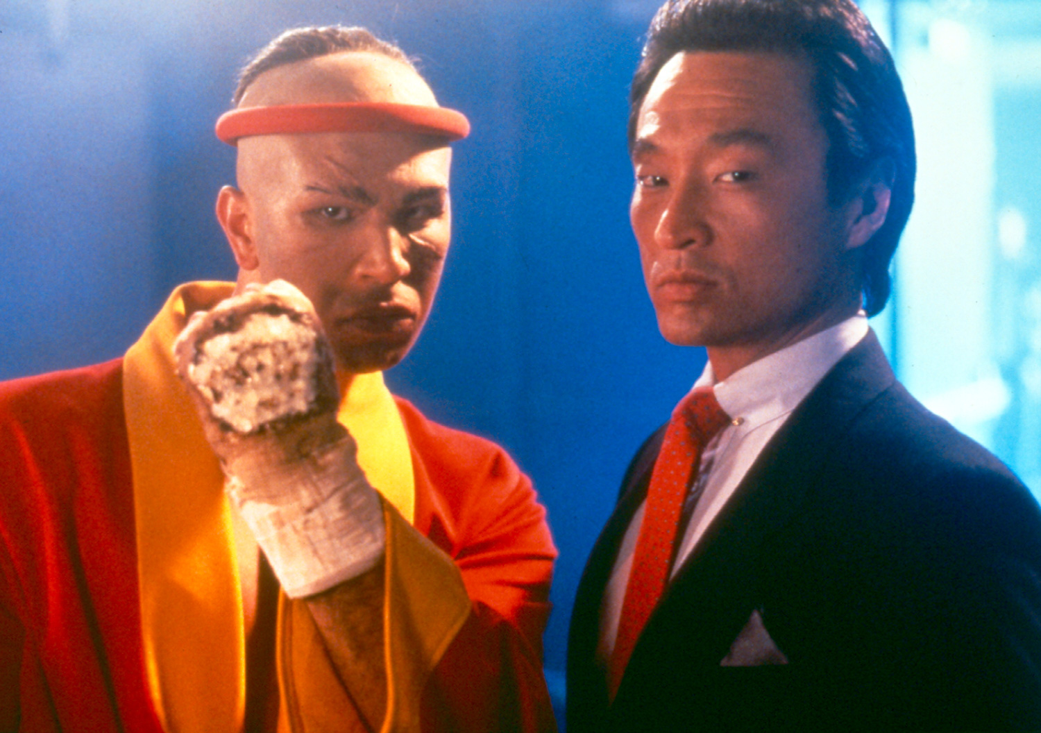 That’s how low-budget this film was, but to his credit Albert Pyun didn’t waste whatever dime he had to make the film with. Sasha Mitchell was pretty good as the last Sloane Brother, even if the acting was stilted in places, more blame to the script written than anything else. Peter Boyle was sufficiently slimy as Maciah, but of course classic baddie of the 80’s and 90’s Cary Hiroyuki Tagawa stole the show as the main villain, and Tong Po, for whatever reason, actually looks far more intimidating here than he did in the original film, a good job by Michel Qissi, but he doesn’t appear until nearly the last fifteen minutes of the film. Dennis Chan is as good as ever as Xian, but taking him away from the Thailand setting was a bit disconcerting, but any amount of Dennis Chan as Xian is good enough for me. Look for the legendary Bruce Lee grappling trainer Gene Lebell as the referee, Benny Urquidez as a corner man, and Brian Austin Green (Beverly Hills 90210) as a punk kid getting schooled by Mitchell.